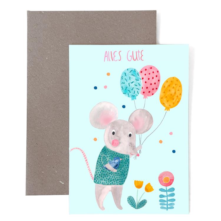 Grußkarte zum Geburtstag - Alles Gute *mit Maus