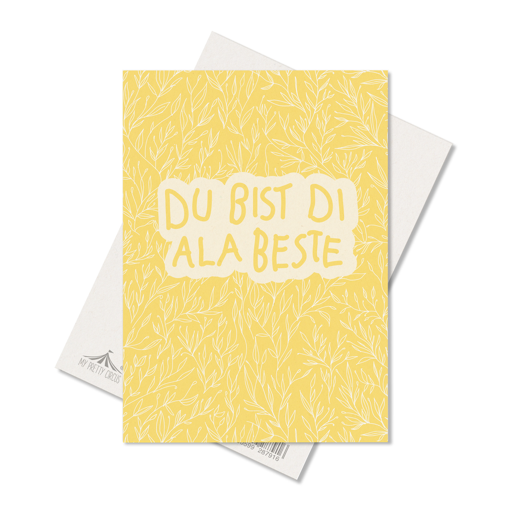 Postkarte Pflanzen "Du Bist Di Ala Beste" Gelb - Holzschliffpappe