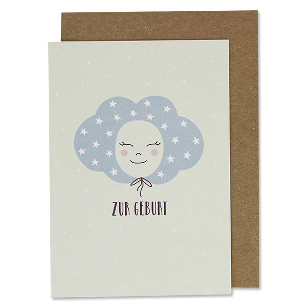 Klappkarte Wolkengesicht, blau – Zur Geburt