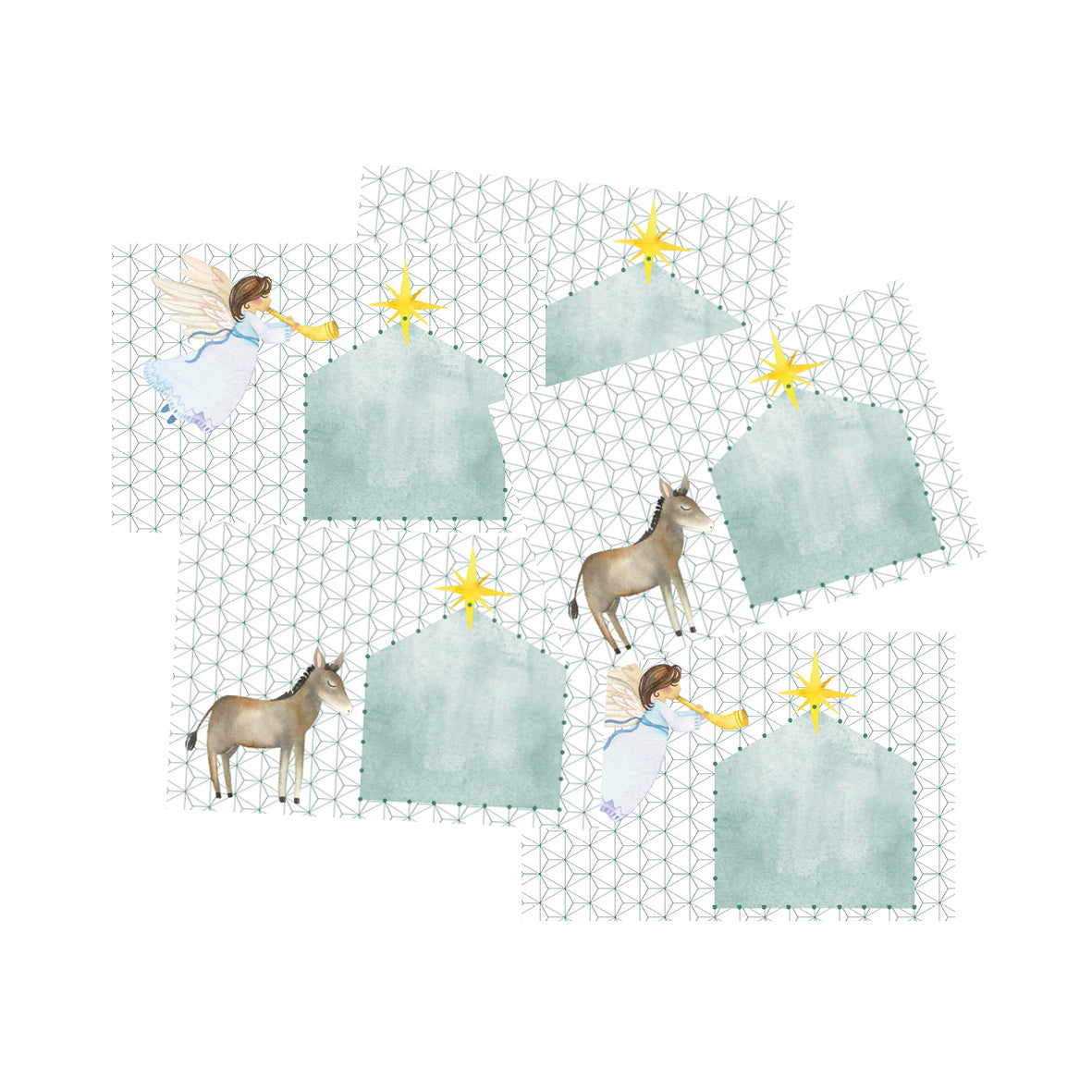 5 hochwertige Designkarten (Engel und Esel gemischt),
