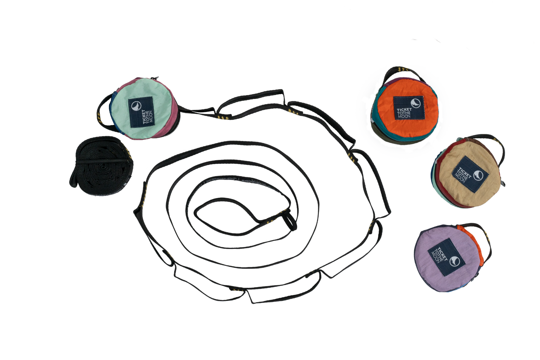 Diese Daisy-Chain-Aufhängung ist super stabil, rutschfest und extrem einfach zu benutzen. Sie eignet sich perfekt fürs Abhängen zwischen Bäumen mit empfindlicher Rinde und für Hängematten, die von mehr als einer Person benutzt werden.