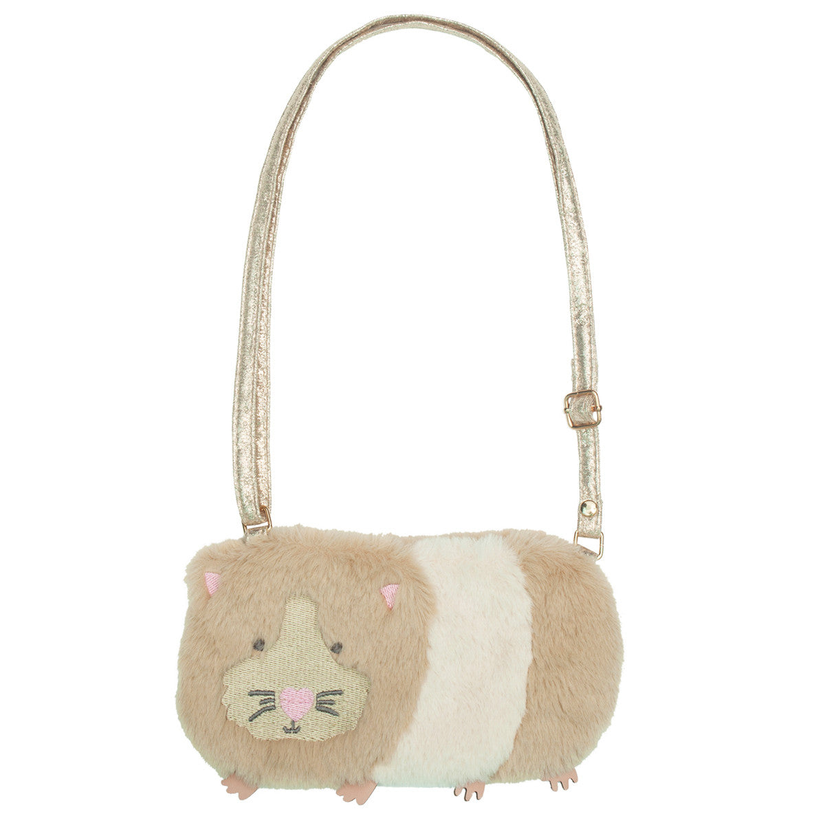 Rockahula Kindertasche MEERSCHWEINCHEN. Diese niedliche Umhängetasche ist ein wunderschönes Accessoire für kleine Ausflüge. Das niedliche Täschchen bietet Platz, um kleine Schätze, Kleingeld oder einen Schlüssel zu verstauen. Durch einen magnetischen Verschluss kann die Tasche verschlossen werden und ein goldener Riemen ermöglicht das Anpassen an die eigene Passform. Größe: 19.5cm x 11.5cm. Länge des Riemens: 48,5 cm. Achtung: Nicht für Kinder unter 3 Jahren geeignet! Strangulations- und Erstickungsgefahr!
