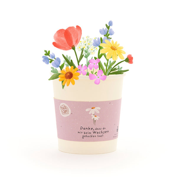 Ein Blütengruß voller Wertschätzung: Dieses besondere Anzuchtset für Wildblumen ist eine liebevolle Geste an Menschen, die uns begleitet, unterstützt und inspiriert haben. Der charmant gestaltete Becher mit der Aufschrift „Danke, dass du mir beim Wachsen geholfen hast“ sagt auf blühende Weise: Du warst wichtig für mich. Alles drin für eine bunte Wildblumenwiese: Das Set enthält Wildblumen-Saatgut, eine Kokos-Quelltablette, einen Anzuchtbecher und eine Anleitung. In nur wenigen Schritten wächst aus dem Set ein farbenfroher Blütengruß – auf der Fensterbank, im Büro oder auf dem Balkon. Ein liebevolles Geschenk zum Abschied: Ideal als Dankeschön für Lehrer, Erzieher, Mentorinnen, Kolleginnen, Eltern oder Freunde – dieser Becher eignet sich perfekt für Abschiede, Abschlüsse, Geburtstage oder einfach als stille Anerkennung für Menschen, die einen wachsen lassen. Nachhaltig: Der Anzuchtbecher besteht aus umweltfreundlichem Material, die Verpackung ist plastikfrei. Ein kleines Geschenk, das blühende Spuren hinterlässt – im Herzen und in der Natur.