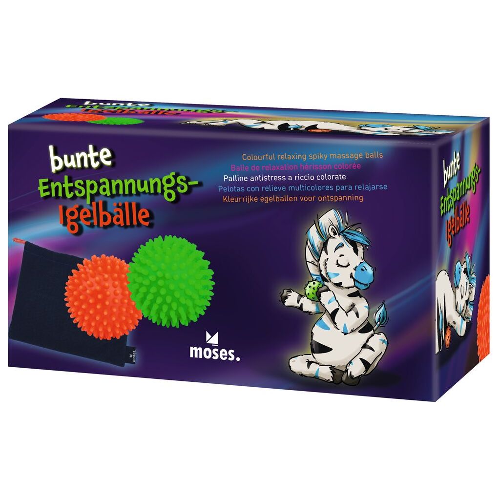 Einfach wohlfühlen und entspannen: Mit den bunten Entspannungs-Igelbällen können Kinder nach dem Sport so richtig zur Ruhe kommen. Denn es ist wichtig, den Körper nach viel Bewegung ausreichend zu schonen. Das Set aus zwei unterschiedlich großen Igelbällen ermöglicht vitalisierende Muskelmassagen, damit sich der Körper nach körperlicher Anstrengung schneller regeneriert. Dank der weichen Noppen mit abgerundeten Spitzen sind Massagen mit den Igelbällen besonders wohltuend. Kinder können entweder sich selbst oder andere Personen massieren und so mit dem kleinen Ball eine große Wirkung erzielen: Einfach einen der Bälle zwischen den Händen, unter den Fußsohlen oder entlang des Körpers rollen und schon tritt Entspannung ein und das eigene Körpergefühl wird verbessert. Auch zum Aufwärmen der Muskeln vor dem Sport können die Igelbälle eingesetzt werden. Die neonfarbenen Massagebälle lassen sich einfach im enthaltenen Aufbewahrungsbeutel verstauen und transportieren, damit sie bei jedem Training sofort einsatzbereit sind. Die Entspannungsbälle können bei Verspannungen und Muskelkater helfen oder einfach zum Relaxen und Stressabbau verwendet werden. Die beigelegte kindgerechte Anleitung bietet Anregungen für viele verschiedene Übungezum Entspannen, zum Trainieren der Koordination, für mehr Konzentration oder zur Anregung der Durchblutung. Ein Muss für alle, die ihrem Körper mit Sport und Entspannung etwas Gutes tun wollen, und ein tolles Mitbringsel für Kinder!