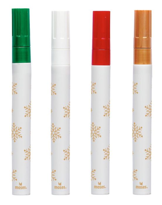 Mit dem Fenstermaler-Set Metallic zauberst du winterliche Kunstwerke auf Fenster, Spiegel oder andere glatte Oberflächen. Das Set enthält drei Metallicmarker und einen Kreidemarker auf Wasserbasis – perfekt für glänzende Weihnachtsgrüße oder kreative Dekoideen. Mit den beiliegenden XXL-Vorlagen findest du sofort jede Menge Inspiration. Und wenn du Platz für neue Kunstwerke brauchst, lassen sich die Farben einfach feucht abwischen!