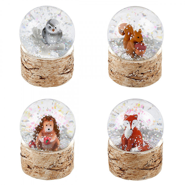 Auch die Tiere des Waldes bereiten sich auf den Winter vor - das Eichhörnchen sammelt Nüsse, der Igel knabbert an einem Apfel und Fuchs und Eule suchen sich schon ein lauschiges Plätzchen. Die Schneekugeln vom moses Verlag in verschiedenen Waldzauber-Motiven zeigen die Waldbewohner in winterlicher Umgebung. Der Sockel der Schneekugel erinnert an Baumrinde und unterstreicht das natürliche Design. Höhe ca. 6 cm Erhältlich als : Igel, Eichhörnchen, Schnee-Eule oder Fuchs. Bitte bei Bestellung als Bemerkung das gewünschte Motiv angeben, sonst erhalten Sie ein zufällig gewähltes Motiv!