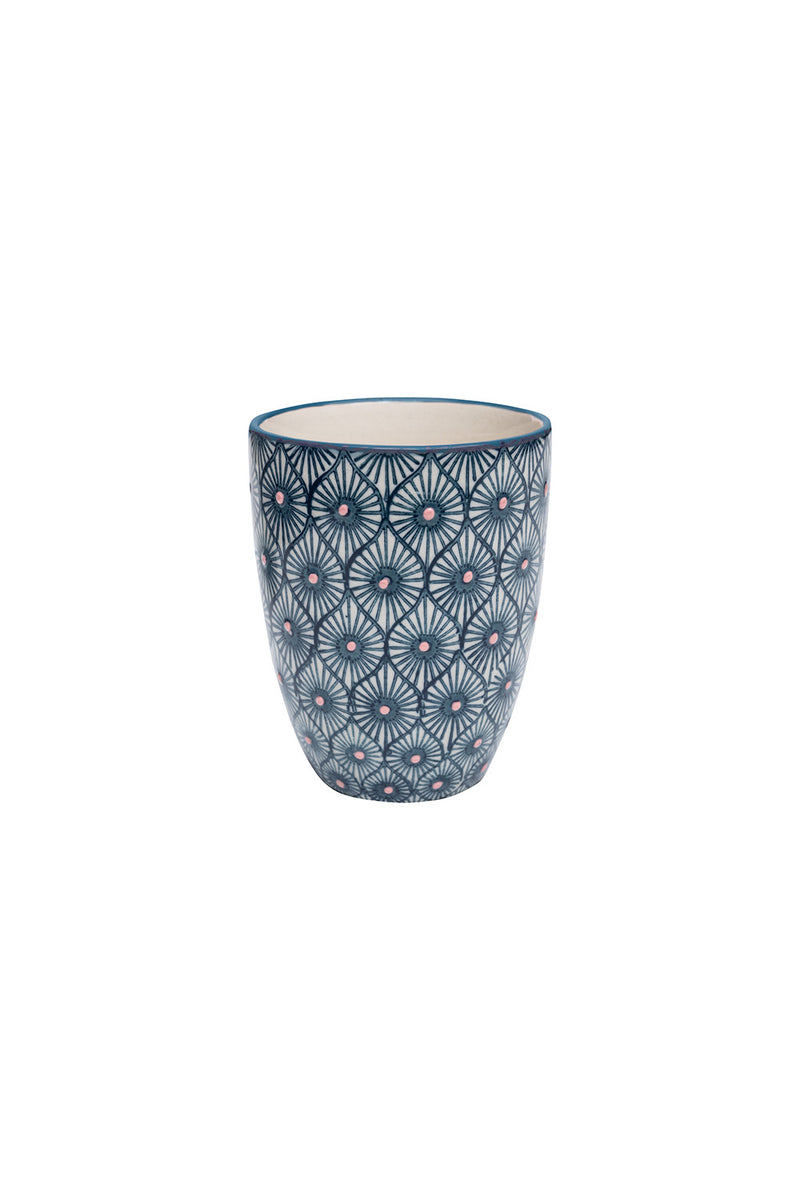 Der handgefertigte Becher mit individuellen Prints liegt gut in der Hand und ist ideal für deine heißen und kalten Getränke geeignet. Das liebevolle Design sorgt für gute Laune und einen stilvollen Trinkgenuss. Verschieden und doch harmonisch lassen sich unsere Becher nach dem Prinzip Mix-n-Match spielerisch zu unserem anderen Geschirr bestens kombinieren. Material: Steinzeug Maße: 7 x 8,5 cm Fassungsvermögen: 150 ml