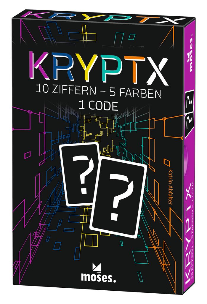 Beim spannenden Kartenspiel Kryptx haben alle geheime Code-Karten, die nur sie selbst kennen – und das sollte auch möglichst lange so bleiben! Runde um Runde müssen die Spieler*innen jedoch Informationen über die eigenen Code-Karten preisgegeben. Wer sich dabei geschickt anstellt und seine Mitspieler*innen möglichst lange an der Nase herumführt, entlarvt mit etwas Glück die geheimen Karten der anderen als Erste*r und gewinnt das Spiel. Dabei helfen eine gute Kombinationsgabe und eine schlaue Strategie. Dank der handlichen Karten in modernem, bunten Design und der kleinen Kartenhalter lässt sich das Spiel ideal überall mit hinnehmen und sorgt für jede Menge Spaß beim nächsten Spieleabend oder auf Reisen. Perfekt für alle, die gerne knobeln und Fans von durchdachten Kartenspielen!