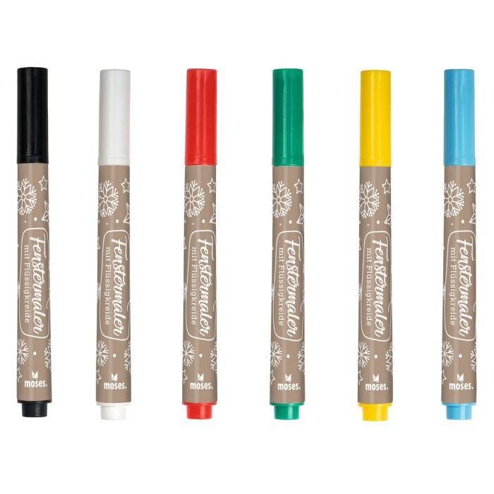 + bunte Kreidemarker inklusive 12 Motivvorlagen + zum Bemalen von glatten Oberflächen + 6 Farben: Weiß, Rot, Grün, Gelb, Blau, Schwarz + mit kräftigem, mattem Farbergebnis + Farben feucht abwischbar + in einer Geschenkbox