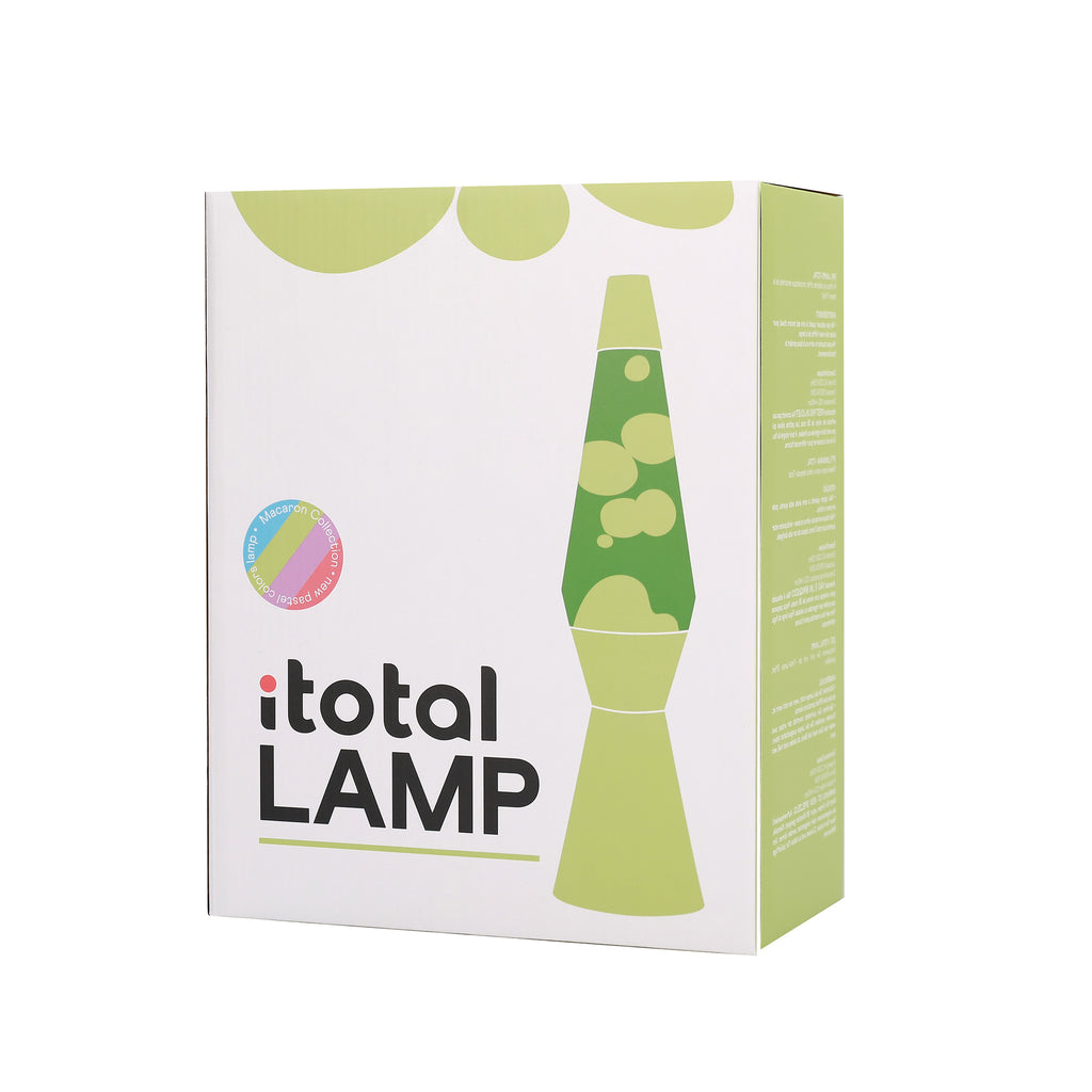 Spaceship Lavalampe mit grünem Sockel, grüner Flüssgkeit und gelbem Wachs