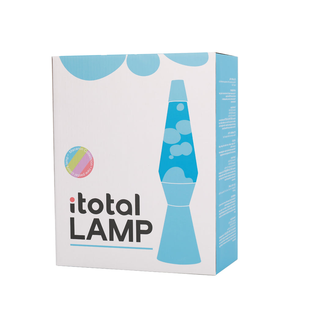Spaceship Lavalampe mit blauer Sockel, blauer Flüssigkeit und weißem Wachs