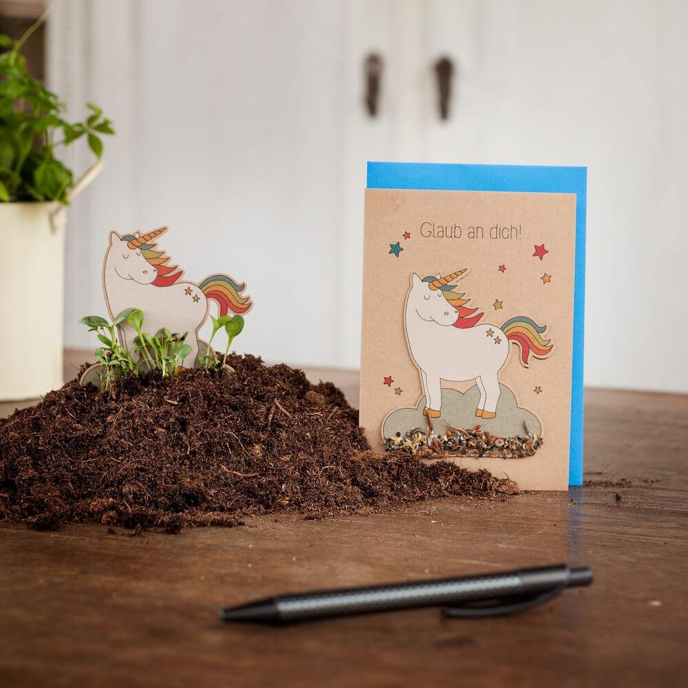 - Das Design vom Saatstecker ist auch auf die Karte gedruckt. Das Gesamtmotiv bleibt also erhalten.