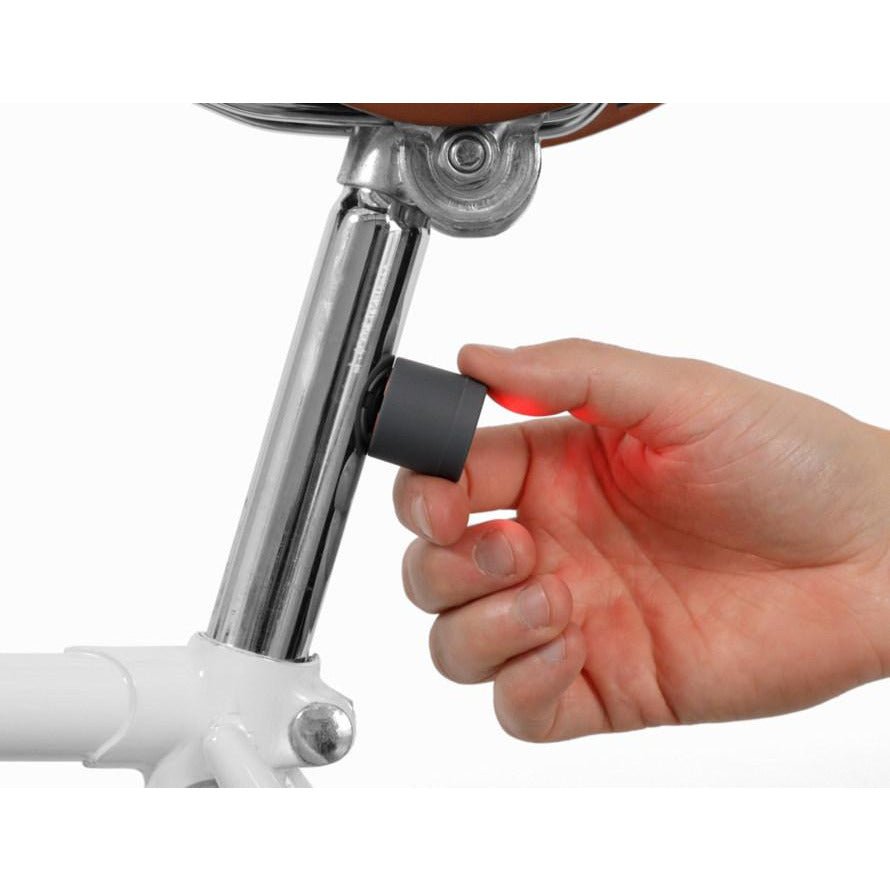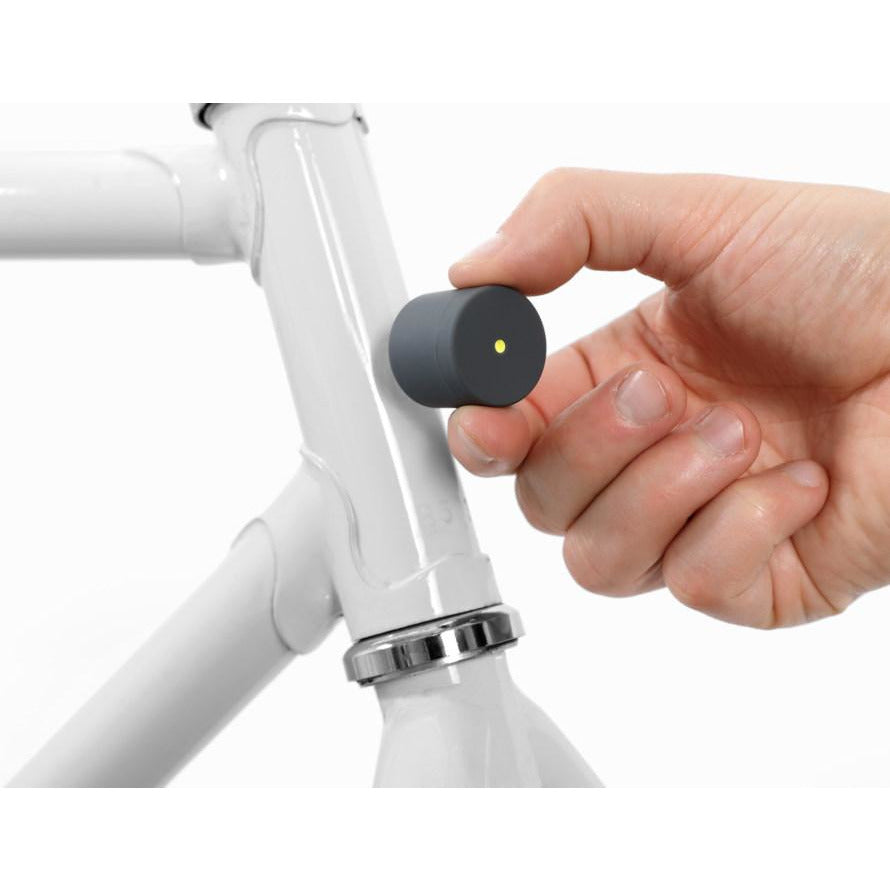 Zwei kleine Magnetleuchten, 1 rote und 1 weisse,  im puristisch funktionalem Design. Lassen sich einfach befestigen, bleiben am Rahmen auch auf holprigen Straßen und schalten sich mit einem Klick an und wieder aus, sobald sie abgenommen werden. Sofort heften sich beide Magneten zusammen und verschwinden in der Hosentasche. Reduzierter und praktischer geht es nicht.