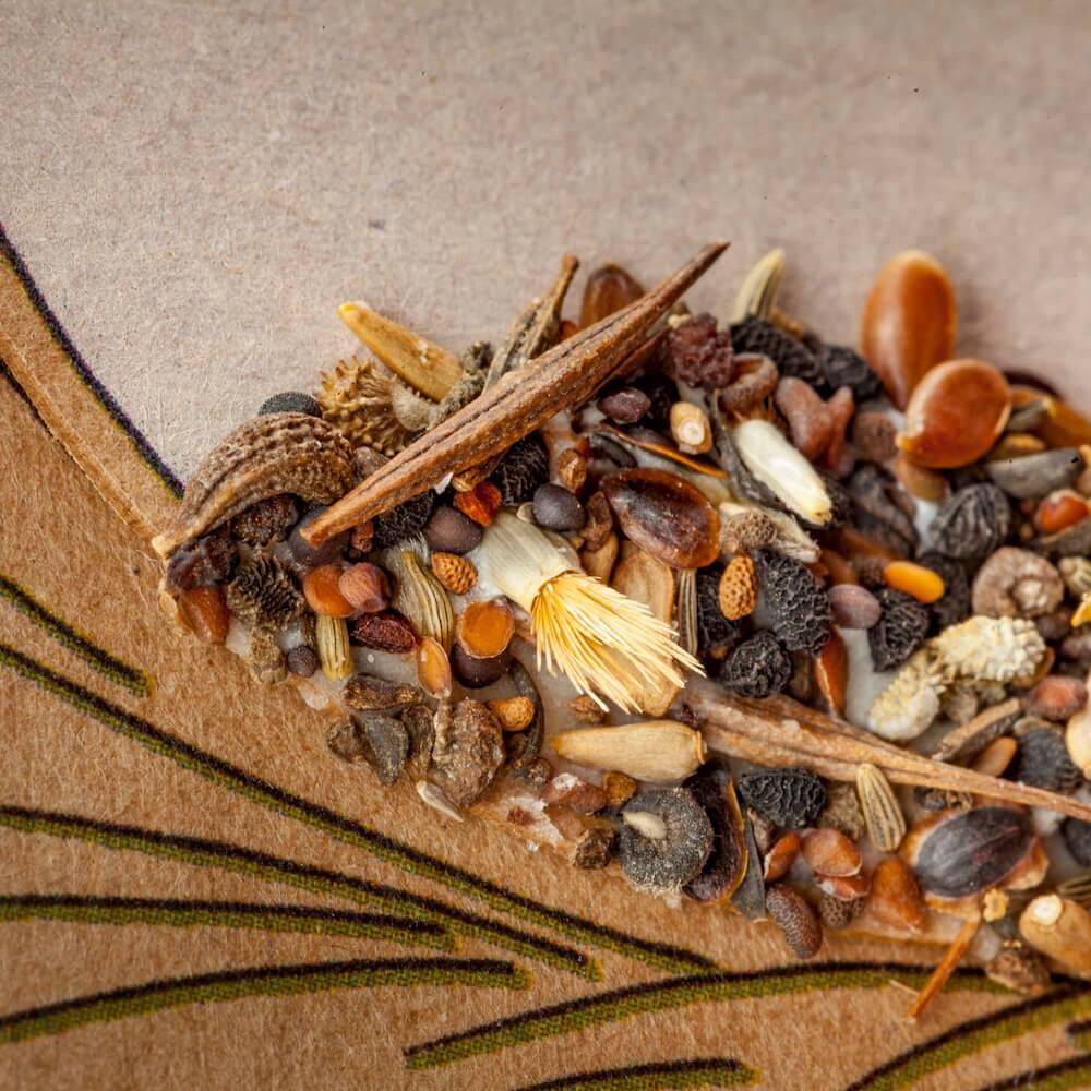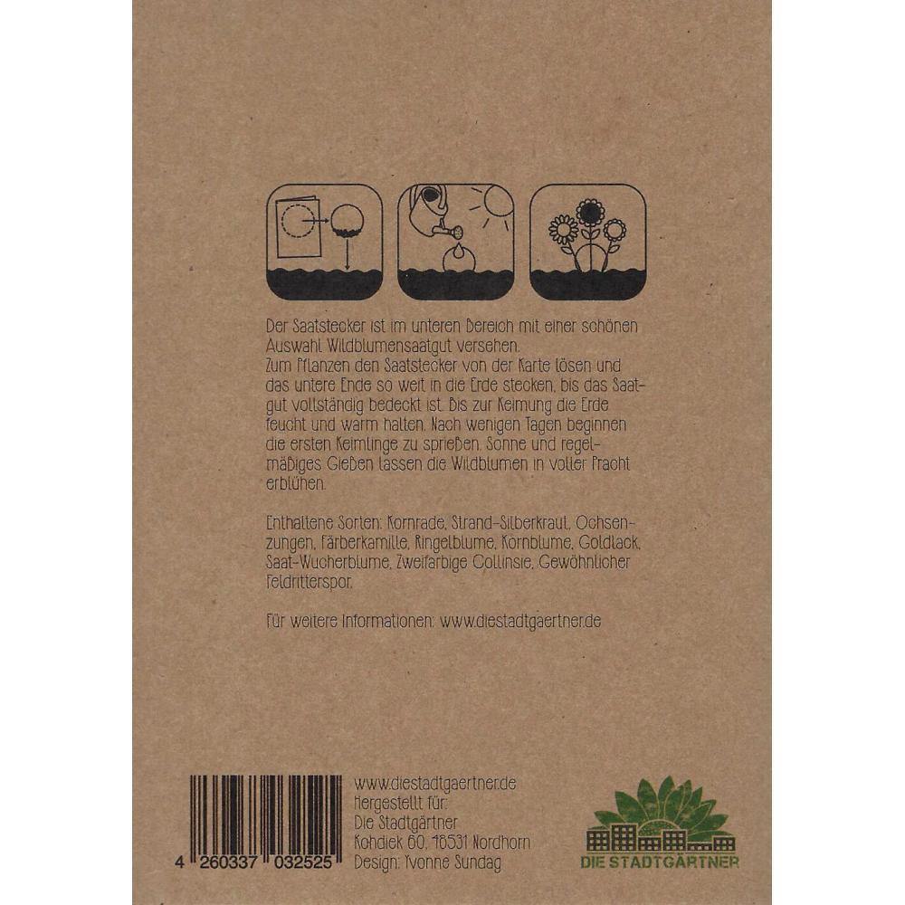 • Das Design vom Saatstecker ist auch auf die Karte gedruckt. Das Gesamtmotiv bleibt also erhalten.