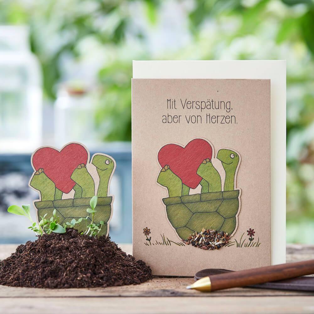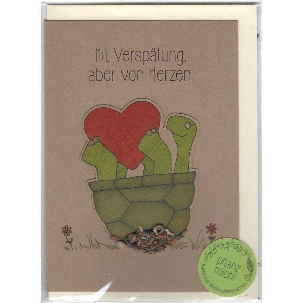 Saatsteckerkarte - Mit Verspätung aber von Herzen