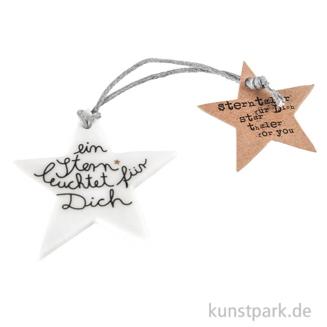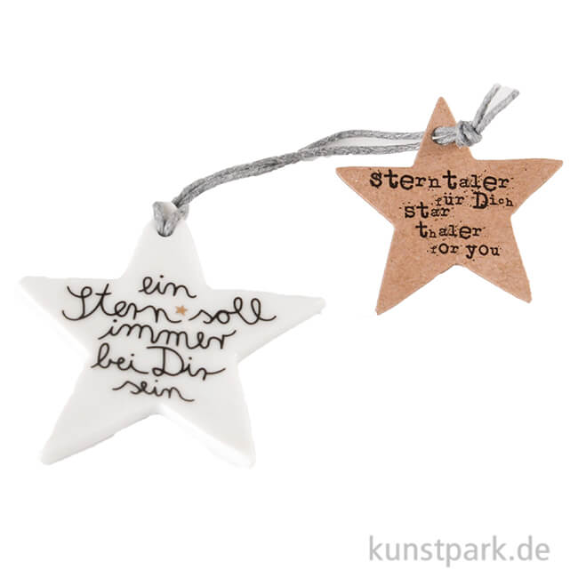 Der feine Sterntaler aus Porzellan trägt ein zartes Motiv als Relief, sowie eine handschriftliche Botschaft. Jeder Taler besitzt ein Band zum Aufhängen - inklusive Papieranhänger zum Verschenken. Ein originelles Kunsthandwerk Unikat von goold old friends.
